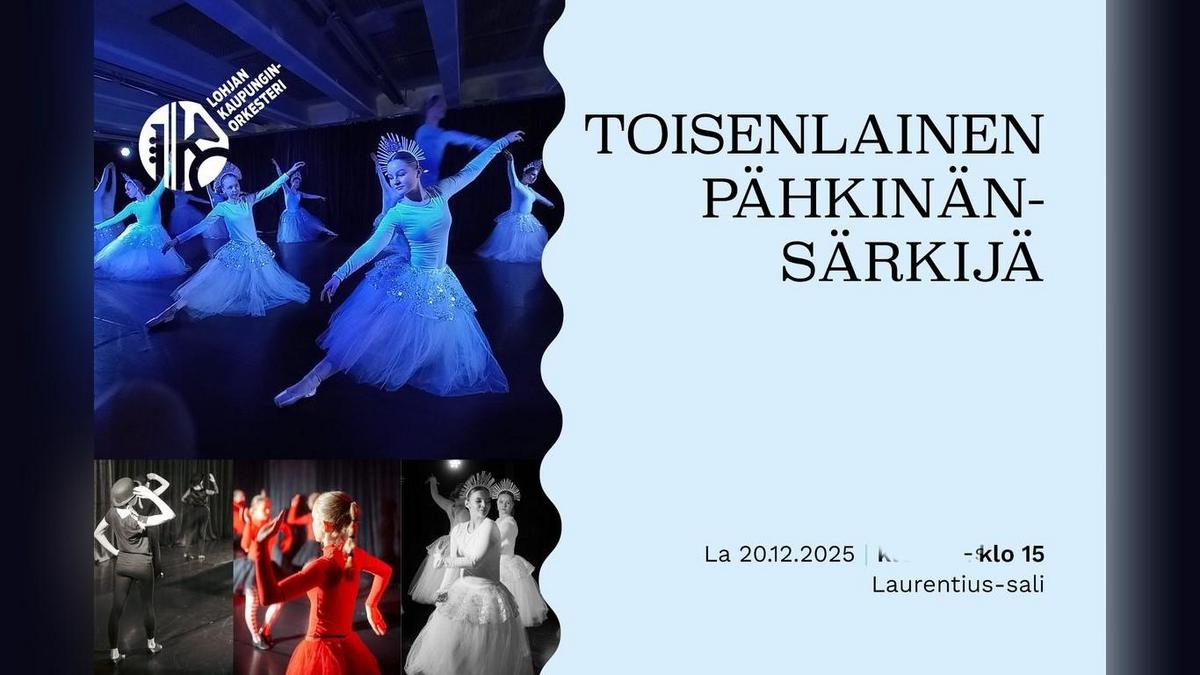 Lauantaina 20.12.2025 klo 15 Laurentius-sali Pjotr Tšaikovski: Pähkinänsärkijä, osia baletista Kasmir Uusitupa, kapellimestari Lohjan kaupunginorkesteri.